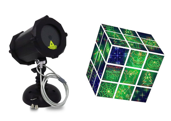 The Deluxe Red & Green™ Laser Christmas Light is a value priced sister version of our popular #1 seller the Deluxe RGB™ This red and green laser combines three functions into one. Producing 18 different laser designs and holiday images for both Christmas and Halloween. Use the provided remote controller to select any pattern or image in one or both colors. Have the patterns transition smoothly from one to another or pause a selected pattern to create a static effect.  Enable strobe mode to have the colors flash at random intervals to produce an amazing light show! Have the effects move at slow, fast or stopped (static) speeds.